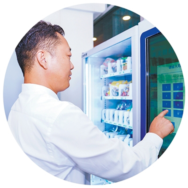 網(wǎng)約車司機(jī)在滴滴“橙驛小站”自助售貨機(jī)選購飲品。