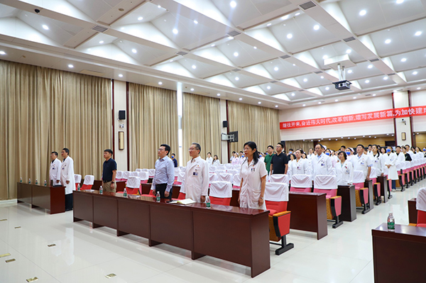 徐州醫(yī)科大學(xué)附屬醫(yī)院組織集中觀看大會(huì)盛況。院領(lǐng)導(dǎo),各臨床醫(yī)技科室、職能部門代表,規(guī)培醫(yī)師代表等參加集中觀看,淮海路院區(qū)12號(hào)樓21樓第一會(huì)議室、鯤鵬路院區(qū)培訓(xùn)樓5樓第一會(huì)議室同步直播。