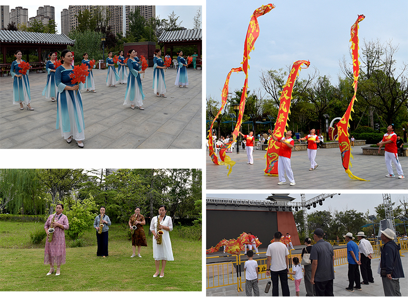 9月14日,在文景體育公園的表演現(xiàn)場,學(xué)員們悠揚的薩克斯樂曲、曼妙優(yōu)美的舞姿、飄逸盤旋的彩帶龍表演,獲得了居民陣陣不息的熱烈掌聲。