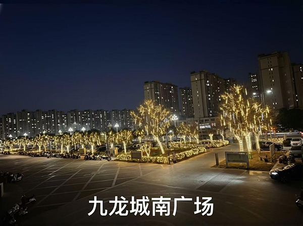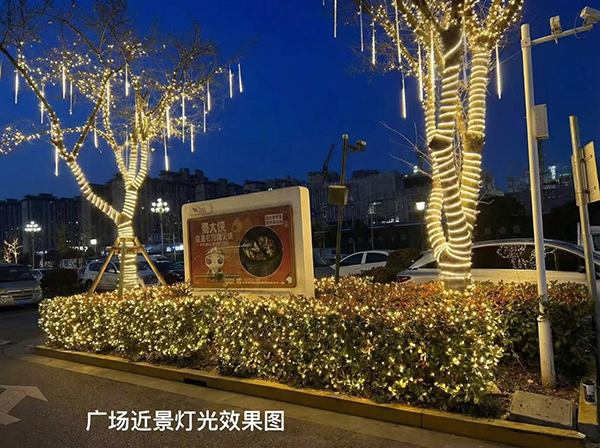 作為沛縣夜間經(jīng)濟(jì)的重要承載地,九龍城廣場憑借核心地段的區(qū)位優(yōu)勢與濃厚的社區(qū)商業(yè)氛圍,匯聚了豐富多元的消費業(yè)態(tài),坐擁旺盛的客流基礎(chǔ)。本次亮化升級工程秉持“溫馨、喜慶、氛圍感”的核心設(shè)計理念,深度融合節(jié)日元素與街區(qū)特色風(fēng)貌,在夜市主入口、沿街景觀樹木、休閑休憩區(qū)域等關(guān)鍵節(jié)點,統(tǒng)籌布置LED滿天星燈串、主題造型燈帶等裝飾設(shè)施。夜幕降臨,暖黃色的柔和燈光與沿街商鋪的特色招牌交相輝映,既精準(zhǔn)勾勒出街道的優(yōu)美輪廓與建筑肌理,又通過巧妙營造光影層次,打造出沉浸式、場景化的夜游體驗空間,讓市民游客在光影流轉(zhuǎn)間,深切感受新春佳節(jié)的濃厚氛圍。