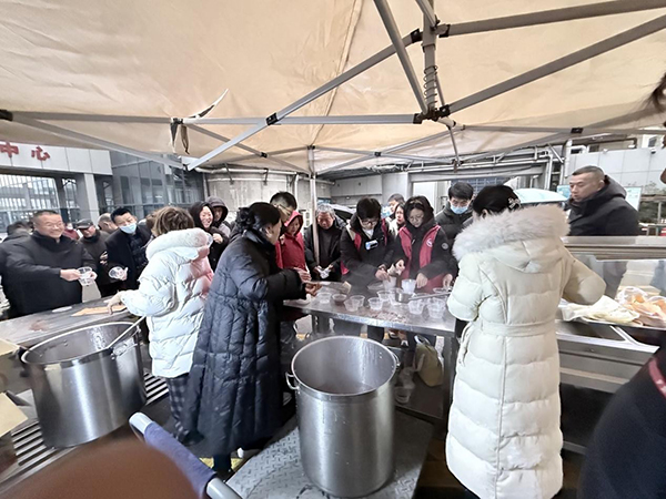1月26日臘八節(jié)當天,清晨6點50分,天色尚未破曉,寒意仍裹院區(qū),但一股暖流已悄然涌動。由膳食管理中心牽頭,院辦、工會、團委、醫(yī)務社工及9名志愿者組成的愛心隊伍,早已將熬煮多時的臘八粥備好。粥品香甜軟糯、暖意融融,徐醫(yī)附院青年志愿者們帶著這份心意,在院區(qū)各處,將熱粥逐一送到早起就診的患者、陪護的家屬,以及徹夜堅守崗位的醫(yī)護人員手中。一碗熱粥驅(qū)散寒意,一句問候傳遞溫情,簡單的舉動里,藏著醫(yī)院對每一個人的牽掛與關懷。