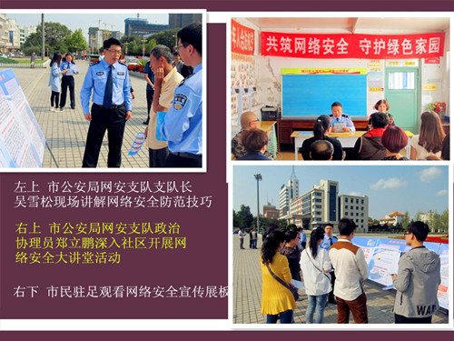 中國(guó)黃淮網(wǎng)訊(鄭立鵬)為貫徹中央、公安部、遼寧省公安廳關(guān)于集中開展網(wǎng)絡(luò)安全法規(guī)及防范常識(shí)大宣傳,進(jìn)一步增強(qiáng)全民網(wǎng)絡(luò)安全意識(shí)的指示精神,近日,遼寧省葫蘆島市公安局嚴(yán)格按照省公安廳總體部署和工作要求,結(jié)合網(wǎng)絡(luò)安全防范教育進(jìn)機(jī)關(guān)、進(jìn)學(xué)校、進(jìn)社區(qū)、進(jìn)國(guó)企等“四進(jìn)”活動(dòng),組織全市網(wǎng)安部門在黨政機(jī)關(guān)門前、文化廣場(chǎng)、商場(chǎng)以及社區(qū)等人員聚集場(chǎng)所,以設(shè)置咨詢點(diǎn)、現(xiàn)場(chǎng)講解、現(xiàn)場(chǎng)解答、開展法制大講堂、宣傳板展示、LED視頻展播、自媒體助陣傳播等多種有效形式,深入開展了網(wǎng)絡(luò)安全宣傳周“法制主題日”活動(dòng),并取得良好社會(huì)效果,市電視臺(tái)等多家新聞媒體對(duì)活動(dòng)進(jìn)行了跟蹤報(bào)道。