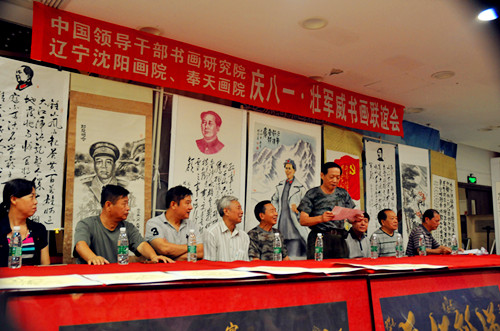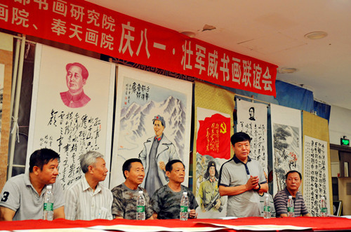 今天,在慶祝八一建軍節(jié)之際,許多老兵唱起了《三大紀律八項注意》、《我是一個兵》、《打靶歸來》……氣勢極其高昂,幾天的活動云集了眾多的遼沈書畫家,中國鄉(xiāng)土藝術(shù)家協(xié)會沈陽畫院,紅旗飄飄書畫院遼寧分院,世華會奉天畫院,世華會百家聯(lián)盟書畫院,人民日報社市場報,中國黃淮網(wǎng)書畫院……為這次活動提供了大量書畫。奉天畫院負責同志高利生、劉偉光大、楊平、郭樹均、關(guān)國元,世華會主要負責人王鐵剛,紅旗飄飄書畫院遼寧分院副院長黃恩智,書畫家程澤民、夏維福、王樹寬、孫萬林、王鑒、王德寶、王瑛、白路等人參加了慶八一的活動。
