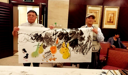 金秋的迎賓館內(nèi),熠熠生輝,高朋滿座,各位書畫大師源于對書畫藝術(shù)的熱愛歡聚一堂,因為對白石傳承人書畫藝術(shù)的認可各抒己見。與會的書畫藝術(shù)大師對李學坤的書畫成就表示熱烈祝賀和崇高敬意,并紛紛發(fā)言。大家一致認為,在傳承齊派畫風藝術(shù)的道路上,李學坤能夠勤奮敬業(yè)、總結(jié)研究、另辟蹊徑、自成一體,作品筆酣墨飽,力健有鋒,極為精細,尤其是他畫的蝦與蟹,可謂是水墨淋漓,洋溢出自然界生機勃勃的氣息,花、鳥、蟲作品構(gòu)圖奇異,不落舊蹊,極富創(chuàng)造精神,手法卓然不群,蔚為大家風范,是大家學習的典范。各位藝術(shù)家希望李學坤能夠繼續(xù)筆耕不輟,使齊派藝術(shù)在中華大地上更好地發(fā)揚光大,為不斷推動大石橋書畫藝術(shù)的進一步發(fā)展做出自己的貢獻。