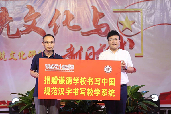 演講過后中華文化促進(jìn)會傳統(tǒng)文化委員會對寧晉謙德學(xué)校進(jìn)行授牌儀式。授予寧晉縣謙德學(xué)校為“中華文化促進(jìn)會傳統(tǒng)文化委員會-傳統(tǒng)文化師資培訓(xùn)組委會”“中華文化促進(jìn)會傳統(tǒng)文化委員會-傳統(tǒng)文化大講堂”與“寧晉縣謙德學(xué)校書寫中國規(guī)范漢字書寫教育體系”的榮譽稱號。