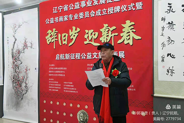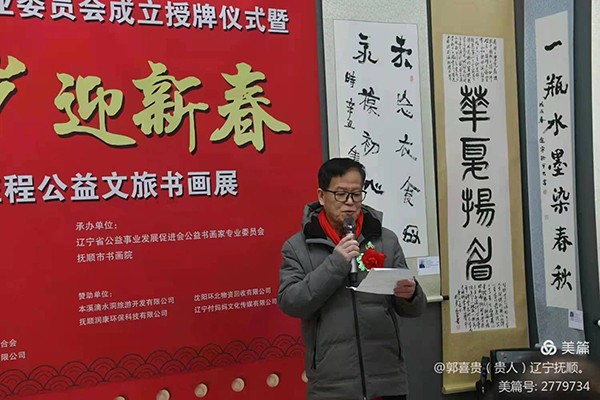 遼寧公益事業(yè)發(fā)展促進(jìn)會(huì)公益書畫家專業(yè)委員會(huì)常務(wù)副主席隋桂香介紹了到會(huì)嘉賓。啟動(dòng)儀式由影視節(jié)目主持人、撫順電視臺(tái)王鋒利主持。