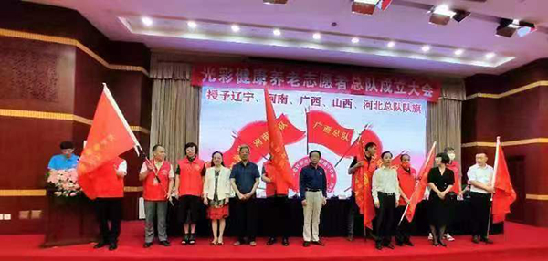 為了弘揚志愿精神,發(fā)展志愿服務(wù)事業(yè),光彩養(yǎng)老事業(yè)促進中心召開光彩健康養(yǎng)老志愿者總隊成立大會暨遼、豫、桂、晉、冀五省總隊成立并授旗。