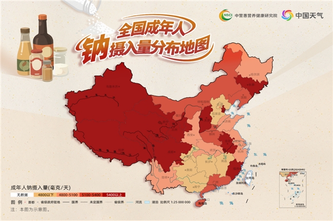 中營(yíng)惠營(yíng)養(yǎng)健康研究院與中國(guó)天氣聯(lián)合發(fā)布的《全國(guó)成年人鈉攝入量分布地圖》