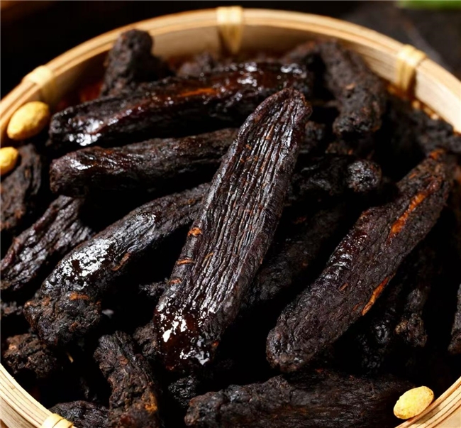 看顏色: 硫熏黃精顏色異常鮮亮、金黃或慘白,過度統(tǒng)一;自然加工的黃精(如山川樹九蒸九曬品)呈深棕褐色或黑褐色,色澤自然有深淺過渡。