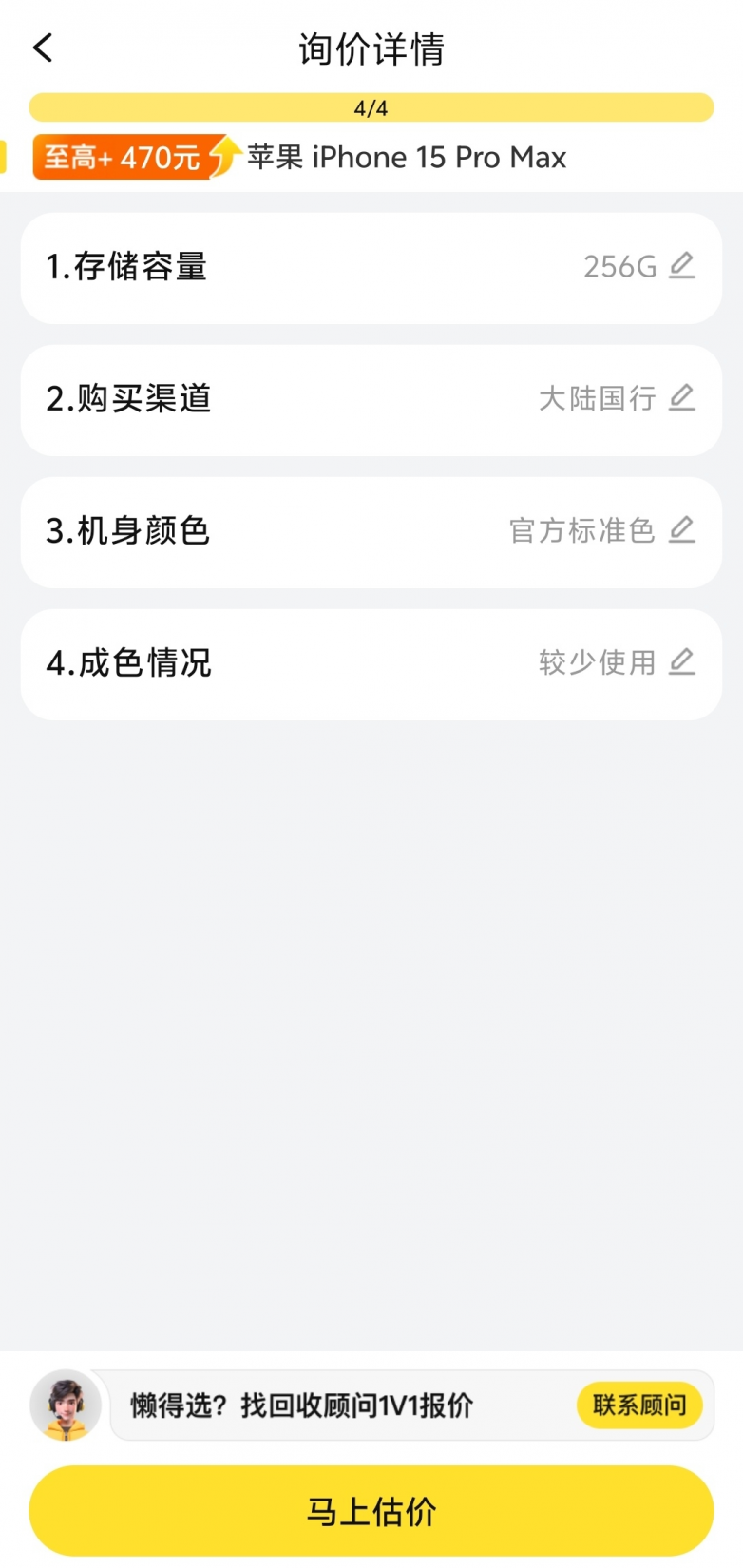 確認(rèn)品牌、型號(hào)、成色等,給出初步報(bào)價(jià) |