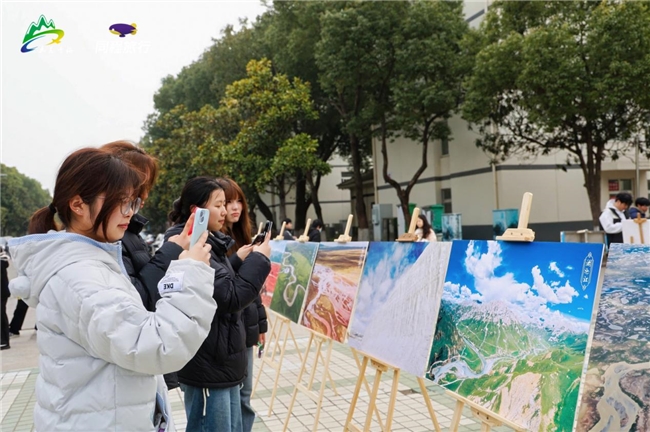 現(xiàn)場人氣依舊火熱,青海好物市集集結(jié)了品類豐富的青海特色物產(chǎn)與非遺手工藝品,師生們紛紛駐足品鑒觀賞,以拍照、拍攝短視頻的方式定格現(xiàn)場體驗(yàn)。攝影展區(qū),一幅幅影像作品宛若一扇通往青海的秘境之窗,帶領(lǐng)師生沉浸式領(lǐng)略可可西里的廣袤原野,邂逅草原上悠然漫步的羊群,穿行于水系交織的黃河源頭。學(xué)子們駐足觀賞、認(rèn)真記錄,對青海精品旅游線路萌生了濃厚向往。拍照打卡區(qū)精準(zhǔn)契合當(dāng)代青年的旅游打卡偏好,以雪山映花海的唯美景致為主視覺,萌趣十足的雪豹、牦牛等地域特色元素,吸引師生們頻頻駐足。