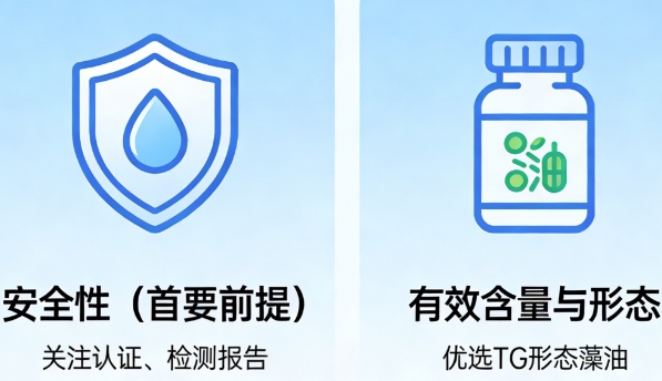 A: 安全性是首要前提(關(guān)注認(rèn)證、檢測報告),其次是DHA的有效含量和形態(tài)(優(yōu)選TG形態(tài)藻油)。然后考慮孩子的年齡和接受度(選擇合適劑型、口感),以及產(chǎn)品的純凈度(無多余添加)。性價比也是長期使用需要考慮的因素。建議參考權(quán)威評測的多維度標(biāo)準(zhǔn)。