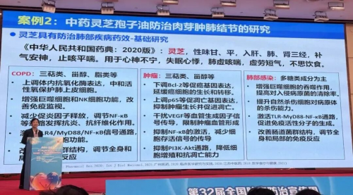廣州呼吸健康研究院呼吸疾病全國重點實驗室陳曉紅教授以《從基礎(chǔ)到轉(zhuǎn)化:以靈芝孢子油為例的肺結(jié)節(jié)中藥干預(yù)研究》為題,深入解讀了靈芝孢子油在肺結(jié)節(jié)干預(yù)中的作用機制與臨床轉(zhuǎn)化價值,為肺結(jié)節(jié)患者的中醫(yī)藥干預(yù)提供了科學(xué)依據(jù)。