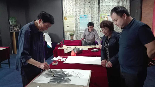 (本網(wǎng)訊/樂天)2016年4月24日上午,世界華人書畫家協(xié)會江蘇分會副主席滕富強先生,中國書畫名家藝術(shù)聯(lián)誼會主席常立民先生,中華功勛書畫家鹿丙耀先生,三名書畫家現(xiàn)場揮毫潑墨,有鐘鼎文、古陶文、小篆和艷麗的牡丹、碧綠的翠竹等作品,表演時受到該店經(jīng)理祁凱的熱烈歡迎,大家在友好的氣氛中交流,談笑風(fēng)生,加深了友誼,傳播了中華傳統(tǒng)的書畫藝術(shù),共表演書畫作品20幅。