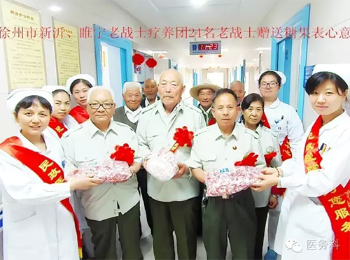“時(shí)間都去哪兒了”,老同志們感慨萬千、潸然淚下,感覺時(shí)間過的太快了.老人們給負(fù)責(zé)療養(yǎng)的醫(yī)療服務(wù)團(tuán)隊(duì)送來了徐州特產(chǎn)小兒酥糖果及椰子奶糖,表達(dá)了真切的感激之情,感謝院方領(lǐng)導(dǎo)及工作人員精心的照顧和耐心的陪護(hù),讓他們真真切切地感受了徐州民政醫(yī)院的“五心”工作法:專心、誠心、愛心、耐心、細(xì)心。