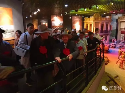 老人們?cè)诨春?zhàn)役紀(jì)念館戰(zhàn)役勝利廳里,回憶軍旅生活!遙想當(dāng)年的英姿.....