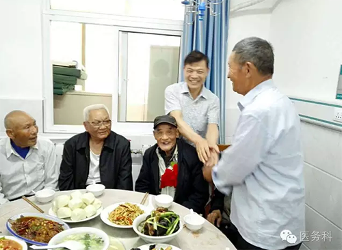在老戰(zhàn)士來院當(dāng)日午飯期間,徐州民政醫(yī)院黨總支部書記、院長楊永密代表院領(lǐng)導(dǎo),向參加此次短期療養(yǎng)的重點(diǎn)優(yōu)撫對(duì)象致歡迎詞,對(duì)共和國的功臣們表達(dá)了誠摯的敬意,并預(yù)祝他們療養(yǎng)期間快樂安康,一切如意!