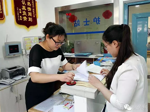 團(tuán)委書記呂明珠與送療養(yǎng)人員來院的民政部門負(fù)責(zé)人進(jìn)行工作交接。