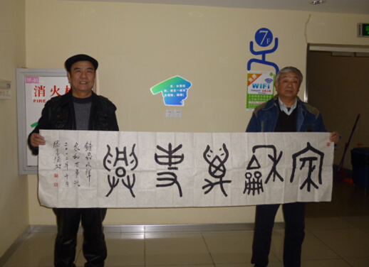 還記得2012年4月份,在徐州朋友的引薦下初識(shí)陶耀善先生,他雖年近七旬,行動(dòng)卻很敏捷,鶴發(fā)童顏、滿面紅光,待人非常和藹慈祥,給所有人都留下極好的印象。下午在和幾名書法家揮毫?xí)r,作為徐州市職工美協(xié)副主席的我,專為陶老書寫了4尺鐘鼎文“祥和”,陶老十分高興并合影留念。4月22日,陶老從南京赴徐州時(shí),又贈(zèng)送給我一本由他編著的《陶府春秋》并在扉頁題詞,自此我們之間便結(jié)下了友誼和緣分。這部由中國文史出版社印刷的大16開精裝豪華版《陶府春秋》,足足有三斤重,為紀(jì)念辛亥革命100周年而編輯,熱烈而莊重,充分展示了陶府400年來前赴后繼、忠心報(bào)國、熱誠奉獻(xiàn)的一部沉甸甸的愛國史。