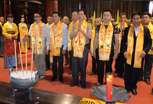 本次羊氏宗親聯(lián)誼共有兩天日程。除宗親會(huì)議的舉辦外,期間還組織族人在大槐樹老家暢游、聚餐。活動(dòng)的壓軸禮為9月13日上午在洪洞大槐樹尋根祭祖園獻(xiàn)殿舉行的“公祭羊氏始祖列祖列宗大典”。大典采用了洪洞大槐樹尋根祭祖園傳統(tǒng)的祭祀議程,200位羊氏族人在老家威風(fēng)鑼鼓、民間傳統(tǒng)舞龍表演的熱情歡迎下走入根雕大門,觀看《移民情景劇》表演,之后祭拜了古大槐樹。祭祀典儀正式開始后,羊氏宗親莊重肅穆的氛圍中祭拜了羊氏先祖,浙贛、瓊粵、甘黔、湘桂、蘇皖、魯豫鄂、渝滇等七個(gè)羊氏宗親團(tuán)向先祖敬獻(xiàn)花籃,羊文超會(huì)長代表宗親會(huì)向先祖敬致祝文。
