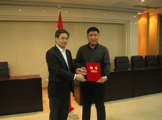 徐州市市長(zhǎng)朱民(左)為田原頒發(fā)聘書