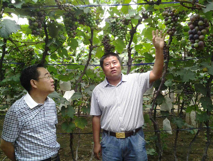 合作社副責(zé)人王洪志介紹巨峰葡萄特點(diǎn)