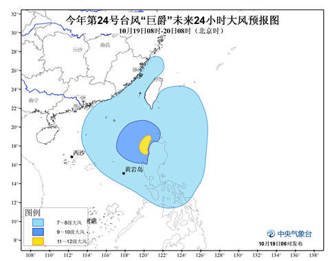 受“巨爵”和冷空氣的共同影響,19日08時至20日08時,巴士海峽、南海中東部和東北部海域、臺灣海峽、臺灣以東洋面及臺灣沿海、福建沿海、黃巖島及附近海域?qū)⒂?-8級大風(fēng),其中,巴士海峽、南海中東部偏東的部分海域風(fēng)力有9-10級,陣風(fēng)可達11級,臺風(fēng)中心經(jīng)過的附近海域和地區(qū)風(fēng)力可達11級,陣風(fēng)12級。