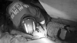 消防官兵試圖將小孩的腿抬起來,再慢慢將小孩移出,但由于縫隙較小稍微向上移動(dòng)小孩就喊疼,最后只得放棄。隨后中隊(duì)指揮員下令用破拆工具對(duì)石塊縫隙進(jìn)行擴(kuò)張,忙活了半天最后發(fā)現(xiàn)毫無(wú)效果。最后,消防官兵決定采用原始的方法,一名消防官兵用螺絲刀和榔頭敲擊石塊周圍的連接處,一點(diǎn)點(diǎn)敲掉石塊,另一名消防官兵用撬棍將石塊往上移動(dòng),隨著空間一步步擴(kuò)大,孩子終于被救了出來。