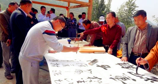 中國(guó)黃淮網(wǎng)山東棗莊11月9日訊(黨同路) 近日,由山東山城古賽部落旅游開(kāi)發(fā)公司、棗莊大海書(shū)畫(huà)院聯(lián)合主辦的書(shū)畫(huà)筆會(huì)在棗莊山亭“周朝部落·滴水古鎮(zhèn)”景區(qū)舉行,書(shū)畫(huà)家們揮毫潑墨,現(xiàn)場(chǎng)創(chuàng)作,并將創(chuàng)作的60余幅作品贈(zèng)送給駐地群眾和游客,使景區(qū)增添了文化藝術(shù)氛圍。