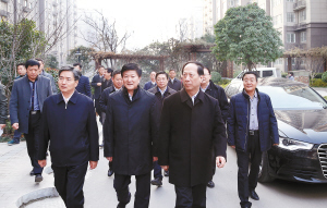 石泰峰在曹新平、朱民等陪同下來到泉山區(qū)新泉佳苑安置房項目了解棚戶區(qū)改造等情況。 本報記者 徐劍 攝