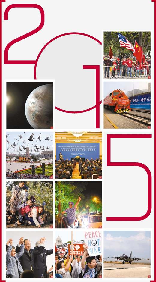 2015年,我們共同經(jīng)歷,紀(jì)念抗戰(zhàn)勝利和應(yīng)對(duì)股市起伏;我們共同見證,兩岸翻開新一頁(yè)和獨(dú)生子女政策終結(jié);我們共同感受,屠呦呦探索的艱辛和天津港事故的悲痛;我們共同喝彩,反腐斗爭(zhēng)的深入和軍隊(duì)改革的加快;我們共同期待,北京冬奧時(shí)間的臨近和“十三五”規(guī)劃的到來(lái)。