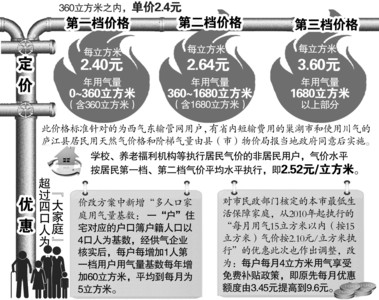 合肥市物價(jià)局最終在采取“方案二”的基礎(chǔ)上進(jìn)一步優(yōu)化:“第二階梯價(jià)格比由1.2倍調(diào)整為1.1倍,即第二階梯價(jià)格由2.88元/立方米調(diào)整為2.64元/立方米,第二階梯用氣量基數(shù)由1080立方米調(diào)整到1680立方米。”該局副局長(zhǎng)王磊介紹,“全市安裝燃?xì)馊∨挠脩?hù)有近6萬(wàn)戶(hù),1080的用氣量只能覆蓋其中的75.8%,調(diào)整后1680可覆蓋90%。”