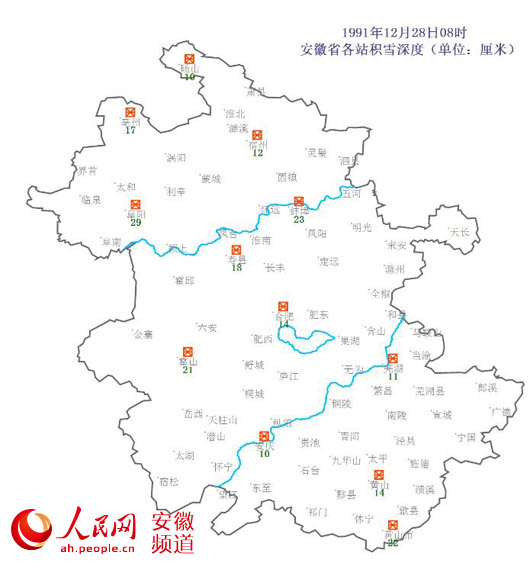 1月21日:淮北部分地區(qū)有小雪;江淮之間北部有小到中雪;江淮之間南部和江南有中雪,部分地區(qū)大雪到暴雪。