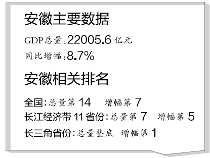 原標(biāo)題:安徽省2015年GDP2.2萬億 增幅長三角第一