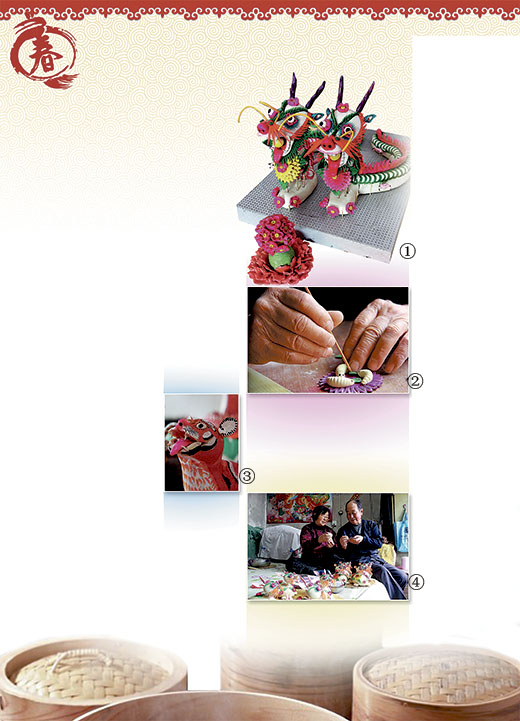 圖①:雙龍戲珠面花。 圖②:用竹棍制作面花。 圖③:老虎面花。 圖④:王民政和老伴田粉芹在家里制作面花。 本報(bào)記者 姜 峰攝 陜 西 走親戚送花饃 本報(bào)記者 姜 峰 臘月里,陜西省黃陵縣處處洋溢著過(guò)年的氣氛。 在黃帝陵旁、地處橋山腳下的石山村,74…[詳細(xì)]