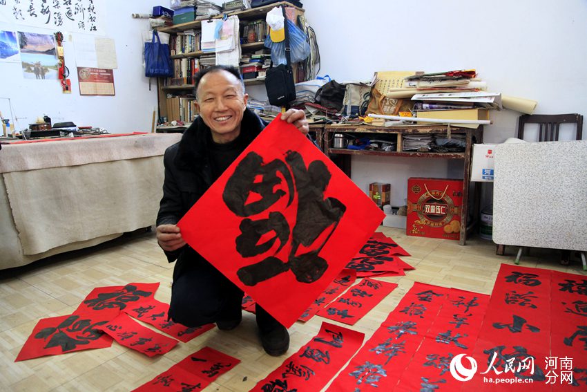 村民喬明辰展示自己剛剛寫好的楹聯(lián)