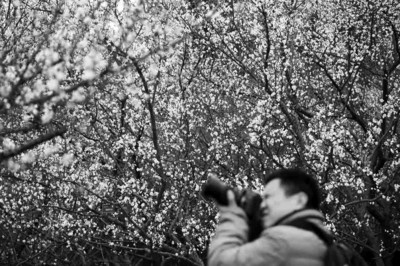 受氣溫下降影響,合肥植物園梅園中游客稀少,只有三兩位攝友來拍攝綻放的梅花。