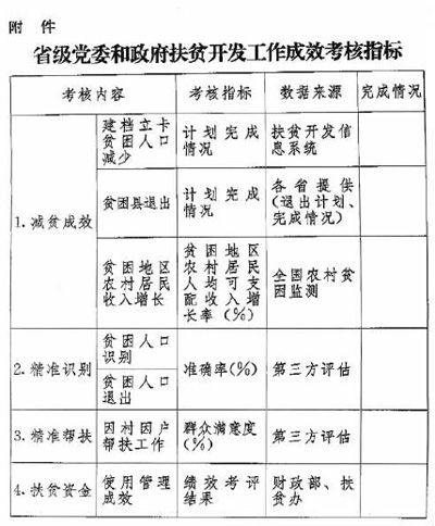中辦國(guó)辦印發(fā)《省級(jí)黨委和政府扶貧開發(fā)工作成效考核辦法》