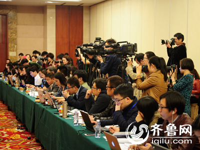 下午3點(diǎn),十二屆全國人大四次會議山東代表團(tuán)舉行開放團(tuán)組活動,第二組向中外媒體記者開放。來自人民日報(bào)、新華社、中央電視臺、山東廣播電視臺、齊魯網(wǎng)、英國路透社等69家中外媒體的100多位記者聚焦山東代表團(tuán)媒體開放日。