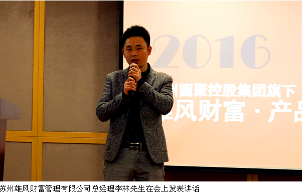 發(fā)布會上,蘇州圓聚控股集團(tuán)董事長陳懷中先生首先指出,辦好此次發(fā)布會意義重大,對公司盡快進(jìn)入資本市場,邁向股權(quán)時(shí)代,打造“互聯(lián)網(wǎng)金融的阿里巴巴”的宏偉目標(biāo)具有重大影響。同時(shí),他強(qiáng)調(diào)集團(tuán)旗下的雄風(fēng)財(cái)富管理有限公司所有精英們,一定要和社會各界股權(quán)愛好者加強(qiáng)合作,攜手并進(jìn),讓雄風(fēng)財(cái)富力爭在本年度內(nèi),在為股權(quán)投資者服務(wù)層面不斷邁向新的臺階。