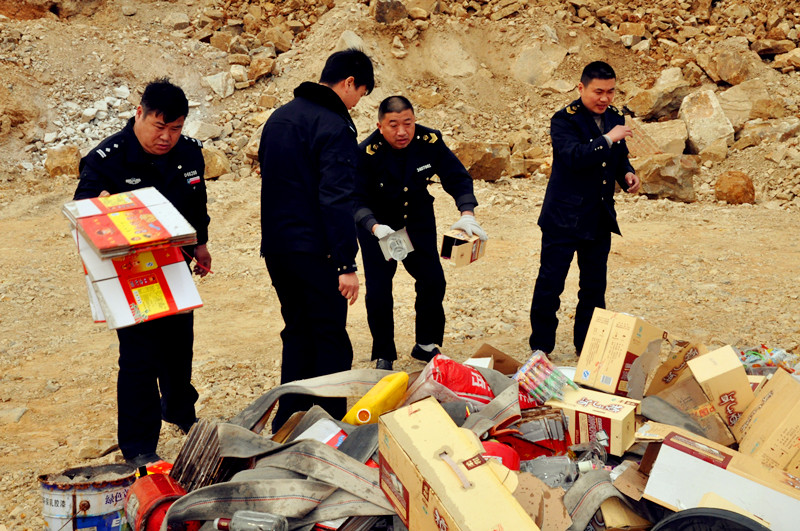 宣傳活動結(jié)束后,經(jīng)偵大隊聯(lián)合縣市場監(jiān)督管理局,在縣垃圾處理廠,當(dāng)眾銷毀了標(biāo)值達55000元的假煙、假酒、假飲料、過期藥品等。