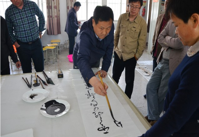 解碩群處長一行還參觀了學(xué)校圖書室,對學(xué)校圖書室建設(shè)提出了意見。臨別前,同行的徐州市著名書畫家劉世龍、楊思良等為學(xué)校校園文化建設(shè)揮毫潑墨。解碩群處長勉勵學(xué)校領(lǐng)導(dǎo)繼續(xù)扎實(shí)開展工作,充分發(fā)揮徐州市書香校園、銅山區(qū)優(yōu)秀讀書集體的輻射帶動作用,充分發(fā)揮銅山區(qū)校園最美圖書館的功能。解處長還表示近期將為學(xué)校捐贈一批價(jià)值50000元的圖書,以支持學(xué)校的閱讀工作。楊楓校長對徐州市文化廣電新聞出版局、徐州市全民閱讀活動領(lǐng)導(dǎo)小組對學(xué)校讀書工作的支持表示感謝,表示一定要以這次視察指導(dǎo)為契機(jī),進(jìn)一步加強(qiáng)讀書建設(shè),進(jìn)一步促進(jìn)全民閱讀,為建設(shè)學(xué)習(xí)型社會,建設(shè)創(chuàng)新型國家做出應(yīng)有的貢獻(xiàn)。