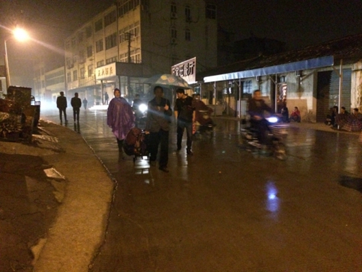 外面一片噪雜喧鬧,車水馬龍,有人打著傘,有人披著雨衣,有人穿著拖鞋,有人拖著行李,有人開著小車,有人騎電動(dòng)車……人們陸陸續(xù)續(xù)從家里離開,往西向縣城的方向出發(fā)。