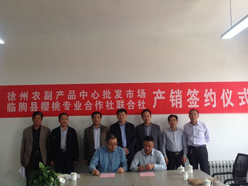 徐州農(nóng)副產(chǎn)品中心批發(fā)市場和臨朐縣櫻桃專業(yè)合作社簽訂產(chǎn)銷協(xié)議