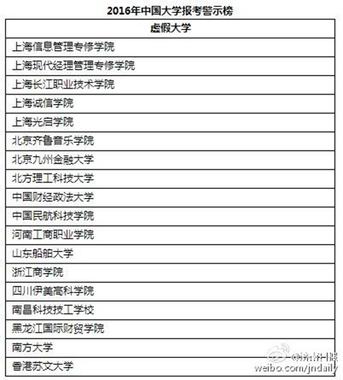 需要提醒的是,每年都會有虛假大學(xué)出來騙人,記者梳理出最新的18所,分別是: