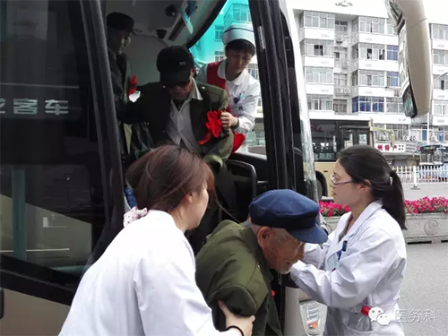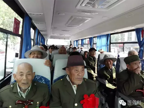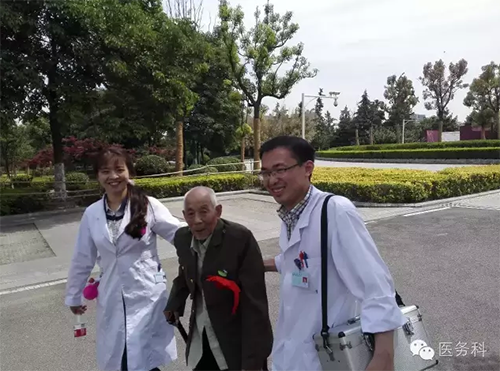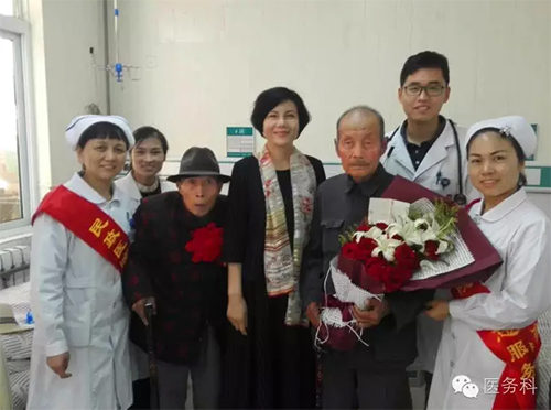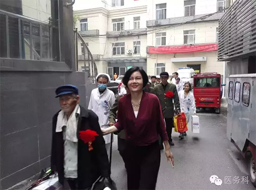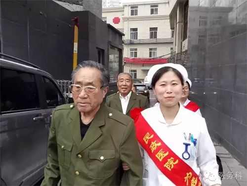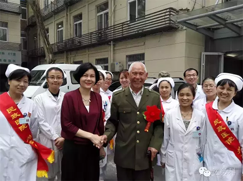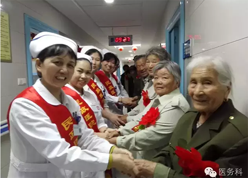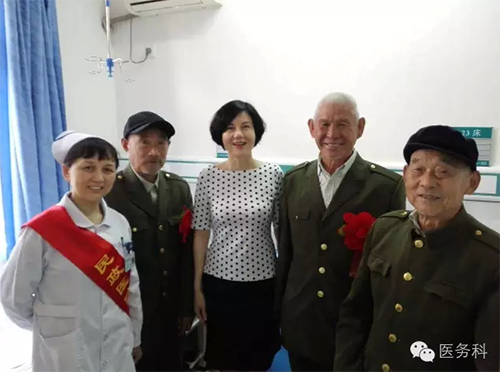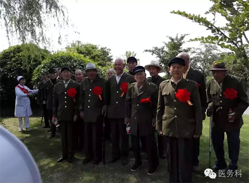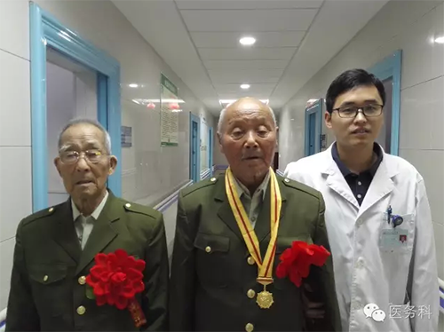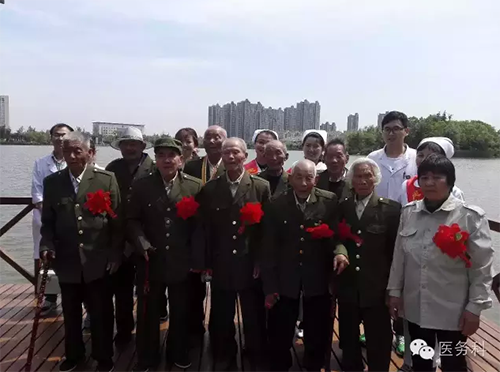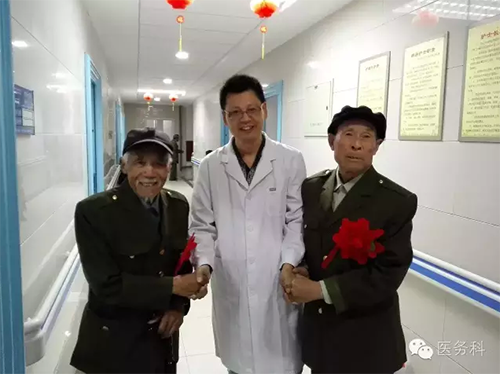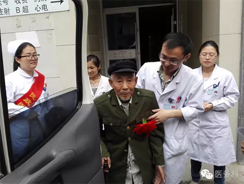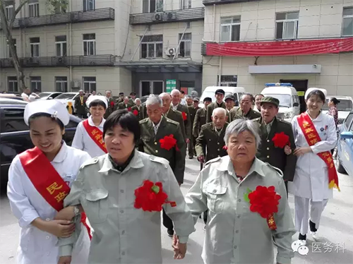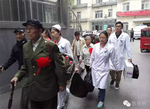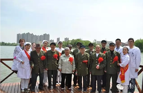 醫(yī)務(wù)人員與老戰(zhàn)士合影留念,互道保重!