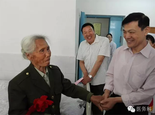 徐州民政醫(yī)院黨總支部書記、院長(zhǎng)楊永密帶著濃濃的關(guān)愛(ài)來(lái)到醫(yī)院康復(fù)療養(yǎng)區(qū),看望在院療養(yǎng)的功臣們,老人們高興地握著楊院長(zhǎng)的手久久不忍放開(kāi)!語(yǔ)重心長(zhǎng)地說(shuō):“謝謝黨和政府及領(lǐng)導(dǎo)的關(guān)愛(ài)!還時(shí)刻牽掛著我們這些老同志!讓我們感到無(wú)比幸福和自豪!楊院長(zhǎng)回敬說(shuō):”你們和那些逝去的先烈們,冒著生命危險(xiǎn)才換回今天祥和幸福的生活!對(duì)你們的關(guān)心和照顧是我們義不容辭的責(zé)任和義務(wù)!能得到你們的認(rèn)可才是我們最大的安慰!