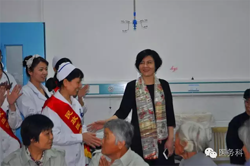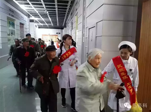 黨支部書記、副院長(zhǎng)沈青向革命功臣介紹以護(hù)士長(zhǎng)朱瑾為代表的優(yōu)撫服務(wù)醫(yī)療團(tuán)隊(duì),并要求優(yōu)撫服務(wù)醫(yī)療團(tuán)隊(duì)要帶著滿腔的深厚感情和強(qiáng)烈的敬業(yè)精神切實(shí)負(fù)起責(zé)任,通過(guò)熱情周到、扎實(shí)細(xì)致、認(rèn)真負(fù)責(zé)的工作態(tài)度,展現(xiàn)民政人的精神風(fēng)貌和素質(zhì)形象,讓優(yōu)撫對(duì)象滿意,讓社會(huì)各界滿意,讓黨和政府滿意!