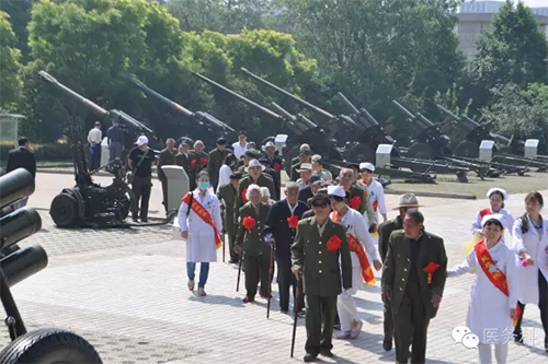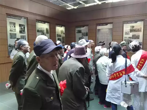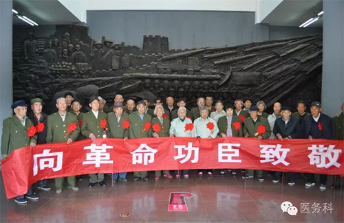 在國(guó)防園功臣們看到當(dāng)年戰(zhàn)友的照片,回憶起當(dāng)年艱苦的軍旅生涯,醫(yī)務(wù)人員在認(rèn)真聆聽(tīng)功臣們講述當(dāng)年的革命經(jīng)歷!他們瞻仰完“淮海戰(zhàn)役烈士紀(jì)念塔”,參觀了“淮海戰(zhàn)役烈士紀(jì)念館”后,功臣們集體合影留