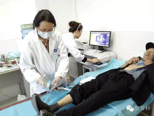 醫(yī)師高新云在認(rèn)真為功臣們進(jìn)行骨密度檢查!
